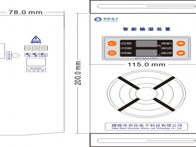 當(dāng)潮濕空氣經(jīng)風(fēng)扇吸入后,通過(guò)特殊設(shè)計(jì)的風(fēng)道流動(dòng),先經(jīng)半導(dǎo)體制冷器降溫結(jié)露,制冷器的結(jié)露在重力作用下滴入引水槽,再由導(dǎo)水管流出柜外。在設(shè)定啟動(dòng)值內(nèi)經(jīng)過(guò)充分循環(huán)除濕,使柜內(nèi)空氣濕度降至結(jié)露點(diǎn)以下,完成整個(gè)防潮引凝加熱過(guò)程。同時(shí),智能型除濕裝置信號(hào)采集傳感器外置,能實(shí)時(shí)準(zhǔn)確的采集到柜內(nèi)的真實(shí)濕度,保證智能型除濕裝置在柜內(nèi)將要達(dá)到凝露條件時(shí)提前啟動(dòng)除濕。