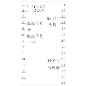 6、輸出接點:(1)AC220V,3A,可帶交流風(fēng)扇(2)AC220V,3A,可帶加熱器